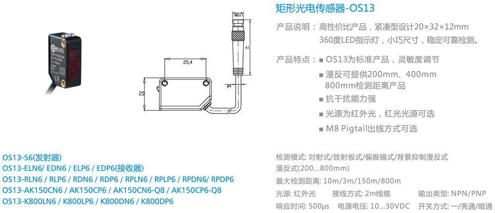 小方形矩形光电传感器-OS10红光
